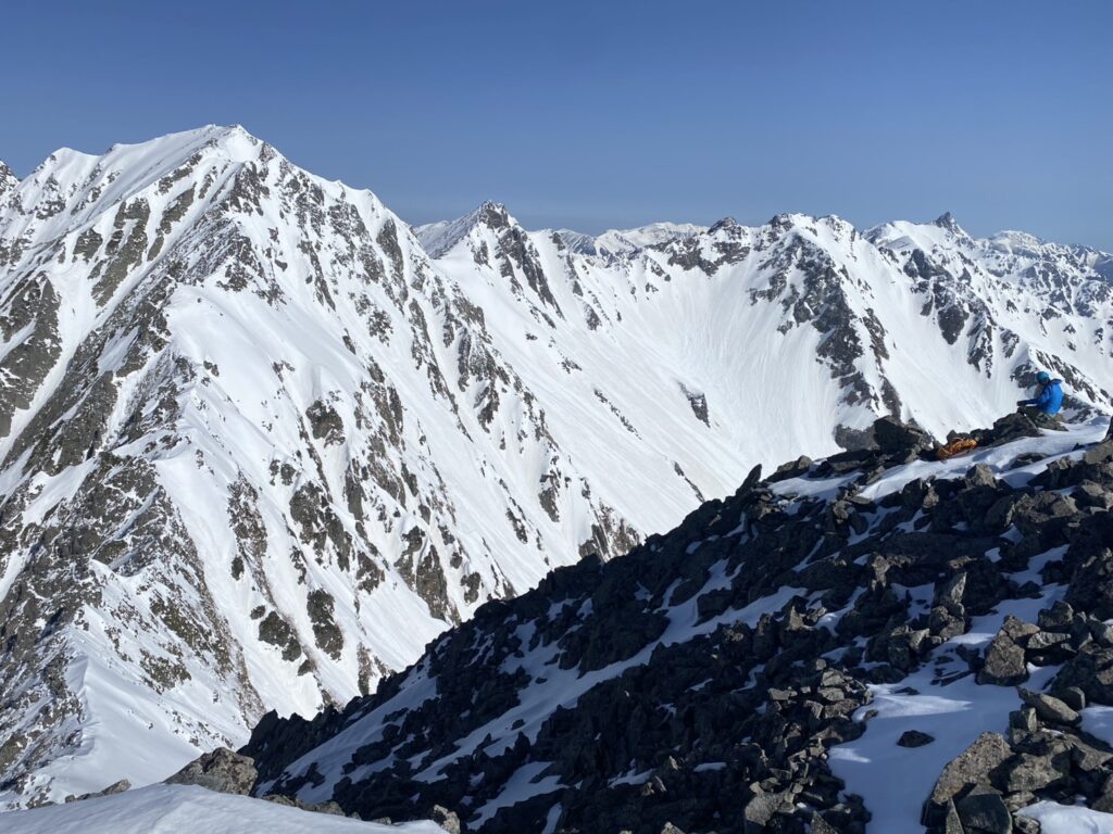 今日は空気が澄んでおり、遠く後立山連峰の山並みもくっきりと見えました。延々続いた急傾斜にふくらはぎがぴりぴりしましたが、山頂に立てばそんなこともすっかり忘れ、3000mの山々の連なりに目を奪われます。