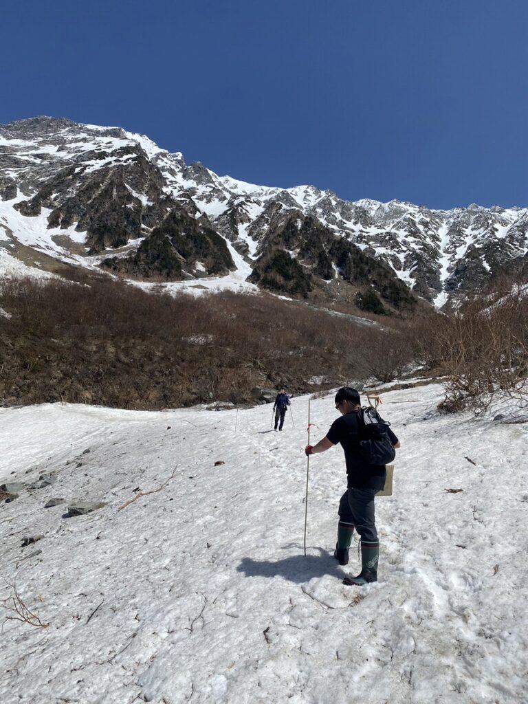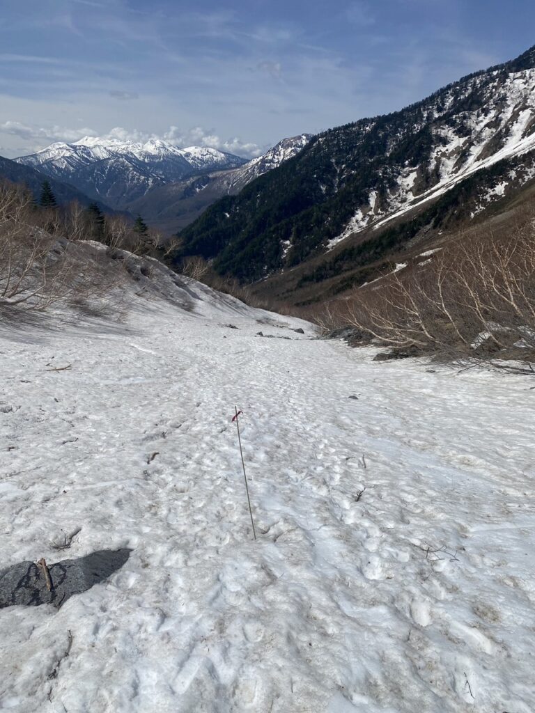 3番付近からは沢の中、雪渓上にルートを付けておりますので、雪上歩行に不安のある方は、