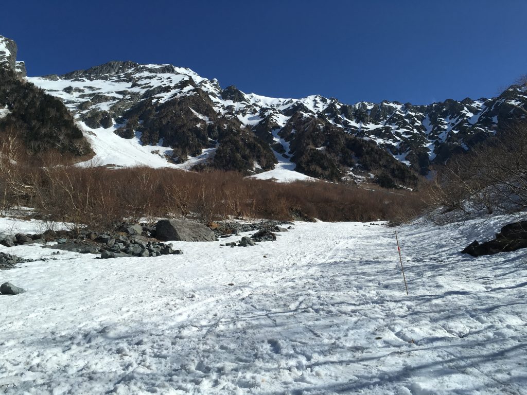 融雪により沢への入り口は少しずつずれてきますが、歩きやすいところで沢に出るようにしてください。
