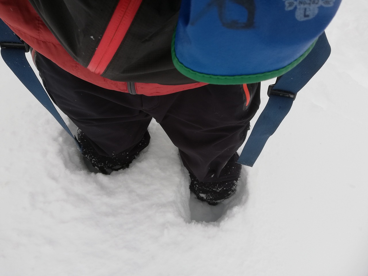 現在の気温4℃、ガスに包まれ寒い日曜日、こんにちは、岳沢小...