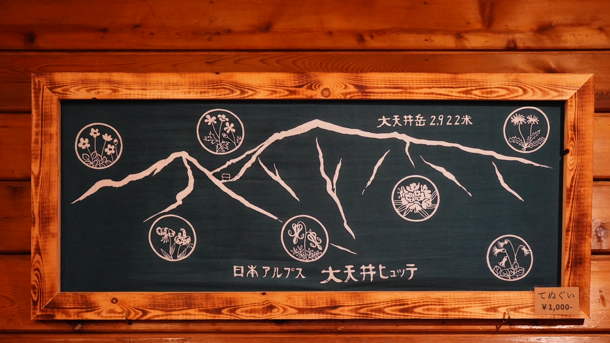 また、今シーズンより大天井ヒュッテの手ぬぐいが復活しました。往年のデザイン復刻!カラーは写真のディープグリーン(深緑)とカーキ(からし)の2色です。