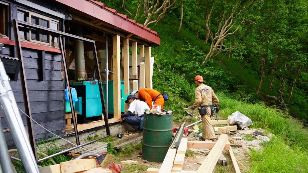今回は7月から8月にかけて行った大天井ヒュッテの改修工事の様子Part2をお届けしてまいります。