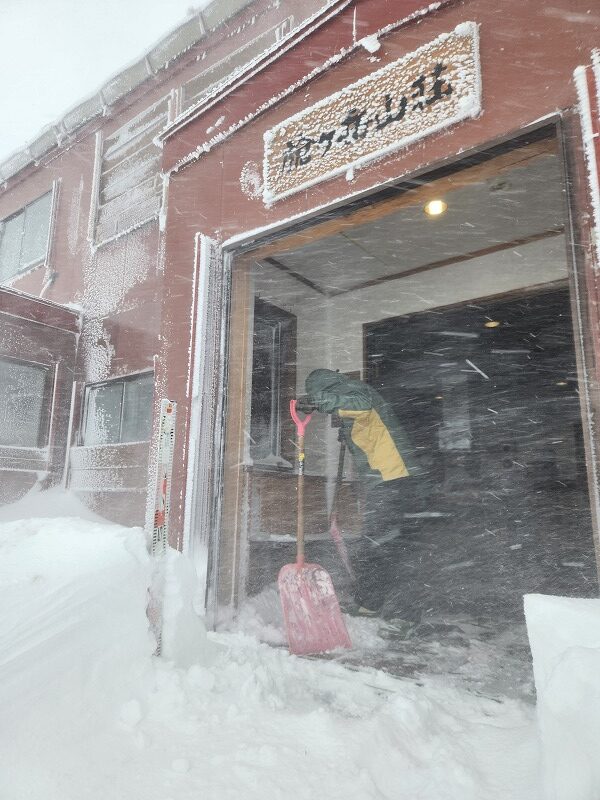 昨日の朝は小屋前で積雪70㎝、吹き溜まりでは1mを超えていました。