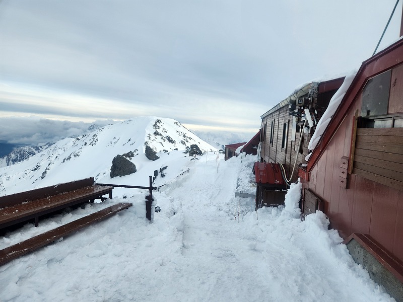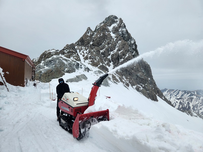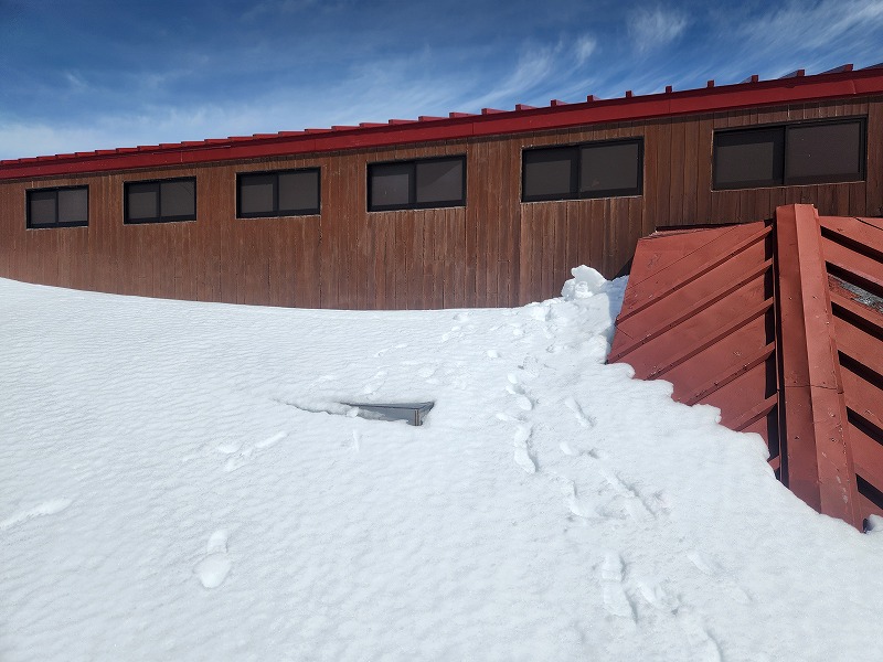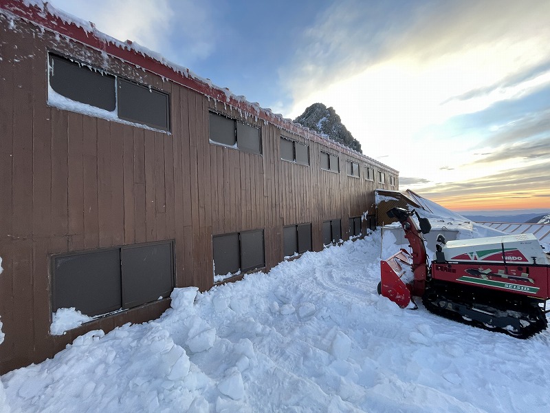 小屋周りの除雪作業はというと、今年は雪が少なく除雪は楽かなーとか思っていましたが、途中の固い層の下にあるサラサラな雪に苦しめられ除雪機の作業が予想外にはかどりません。