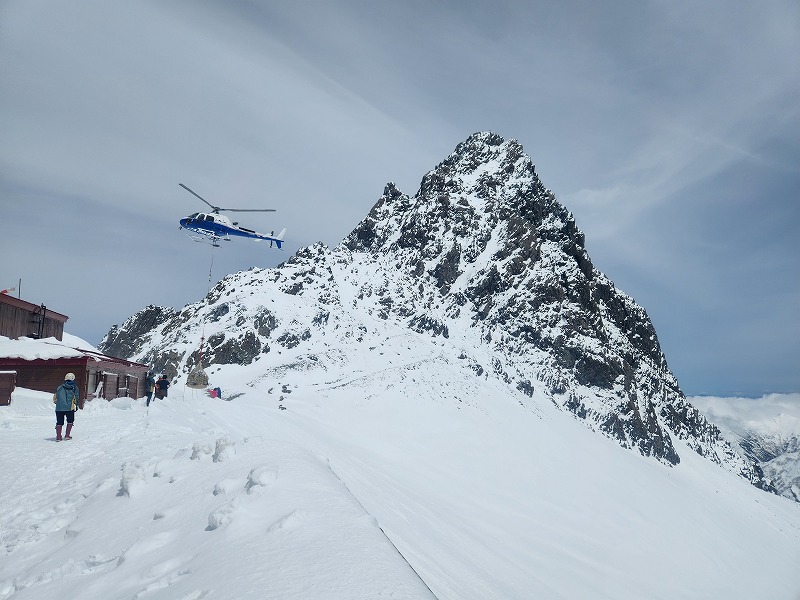 小屋開けヘルプに入ってくれていたメンバーが先日下りて今日はヘリ要員として活躍してくれました。