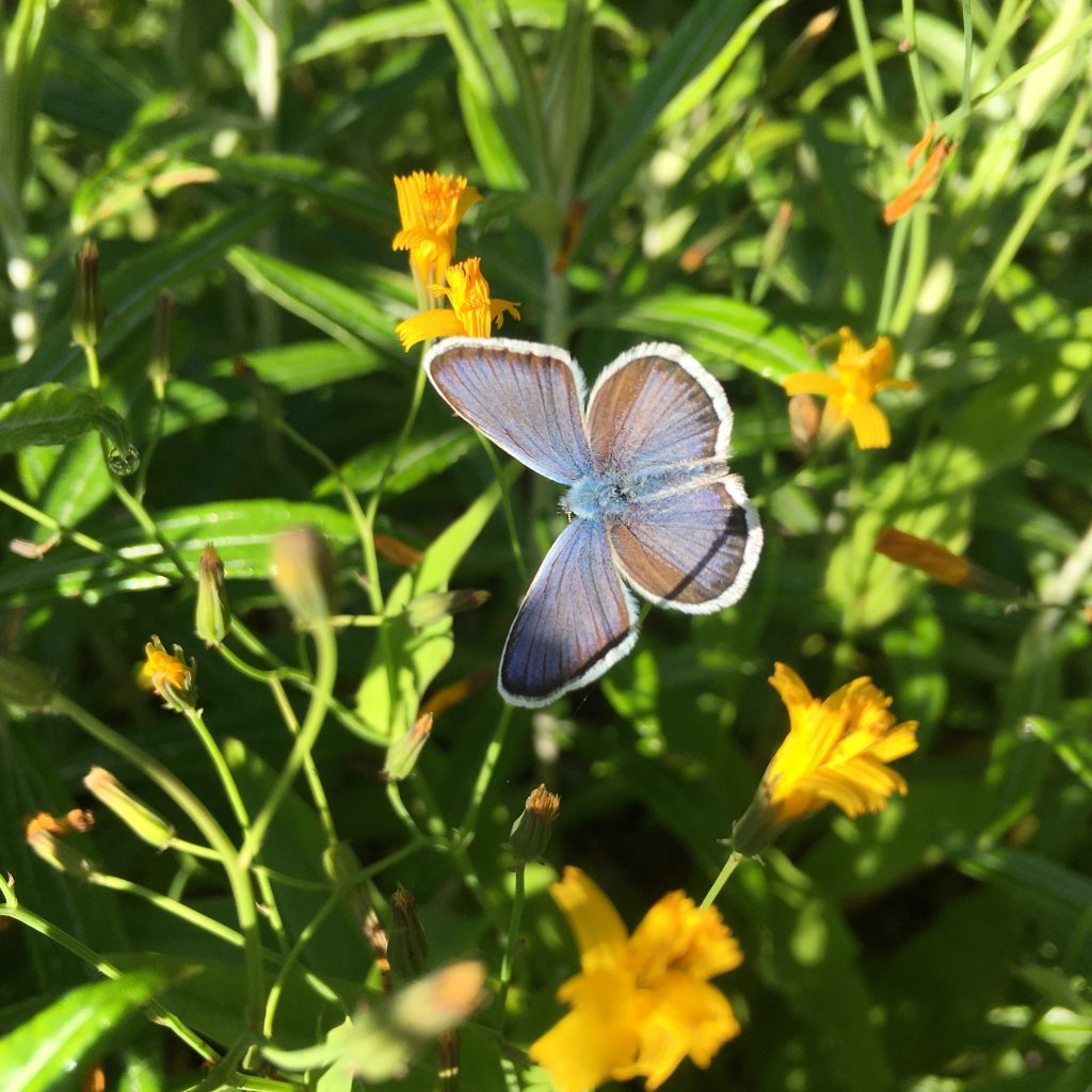 インスタグラムにも載せましたが、こちらは毎朝のように見られるシジミチョウの日浴びです。何匹ものシジミチョウが羽をいっぱいに広げて、朝のやさしい太陽に羽を向けている様は何とも素敵です。